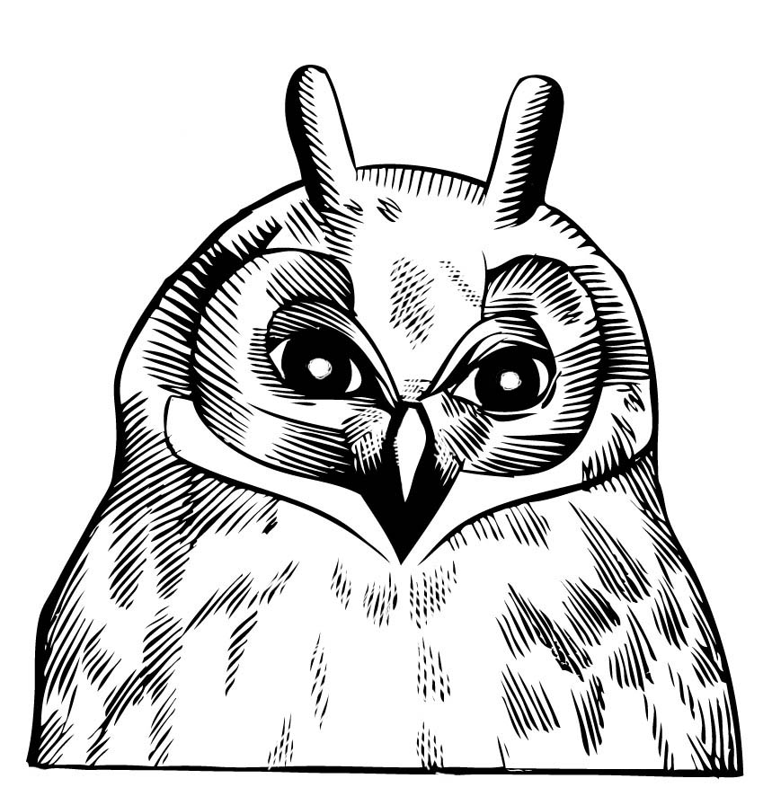 Suddenly, the owl’s head swiveled around and Gordo found himself looking straight into large stern eyes that were as black as a thousand midnights down on a Cyprus swamp.